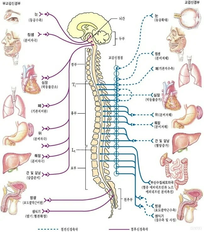 이 부위는 자율신경이 지나가는 핵심 통로입니다.